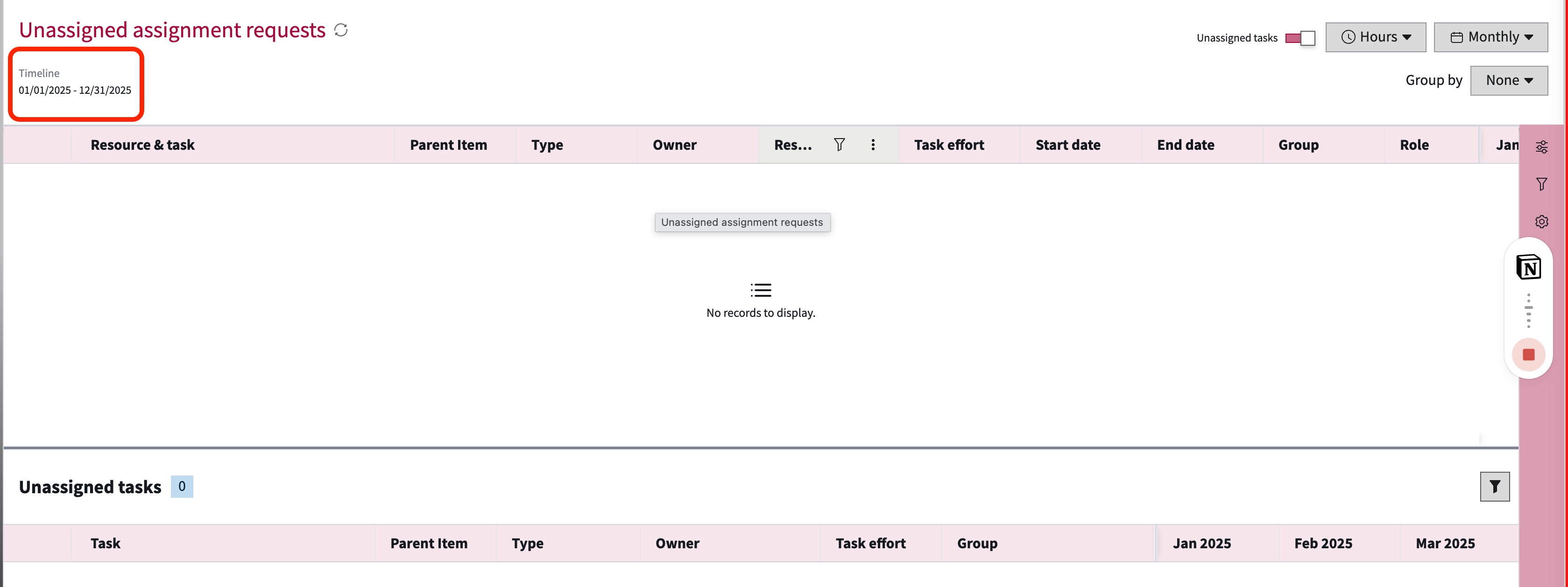 I've noticed that while our "Unnassigned assignment request" widget (screenshot 1) in the Overview Dashboard is showing the correct number of resources, the filter is not updating once you click into it. It continues to show the 2025 filter (screenshot 2). Has anyone else experienced this with the new year?