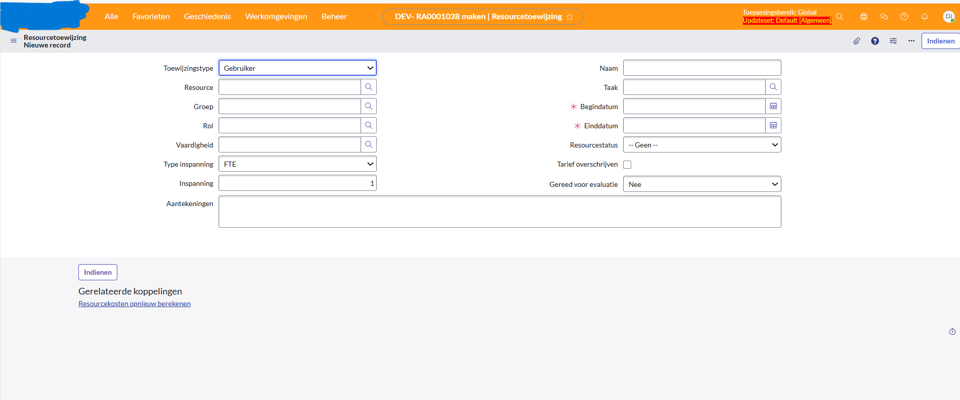 Translations in Resource Management workspace