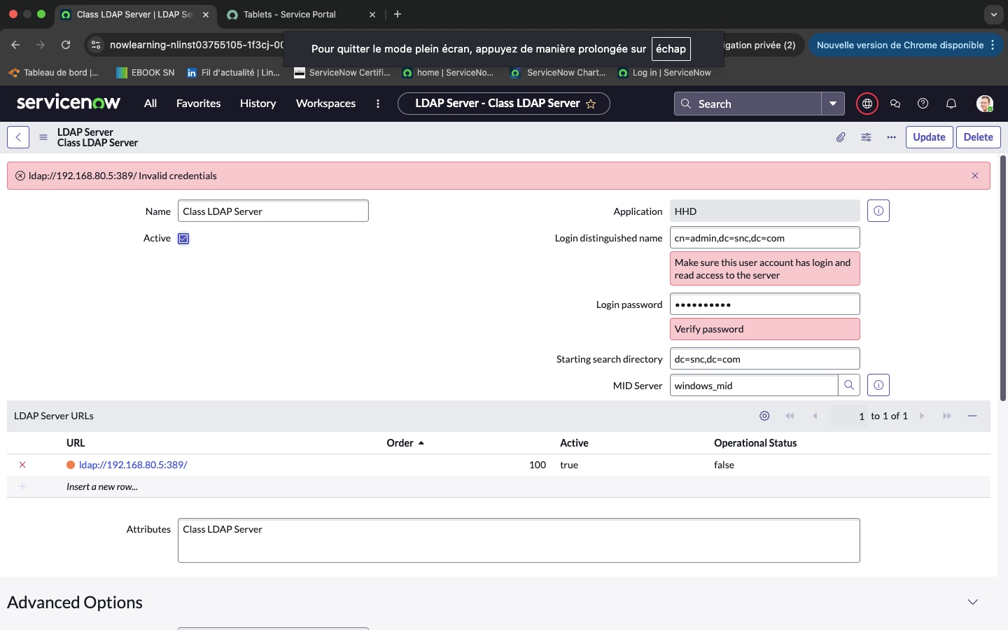 I’m currently working on the LDAP integration lab for my CSA training and I’m facing a persistent issue connecting to the LDAP server.