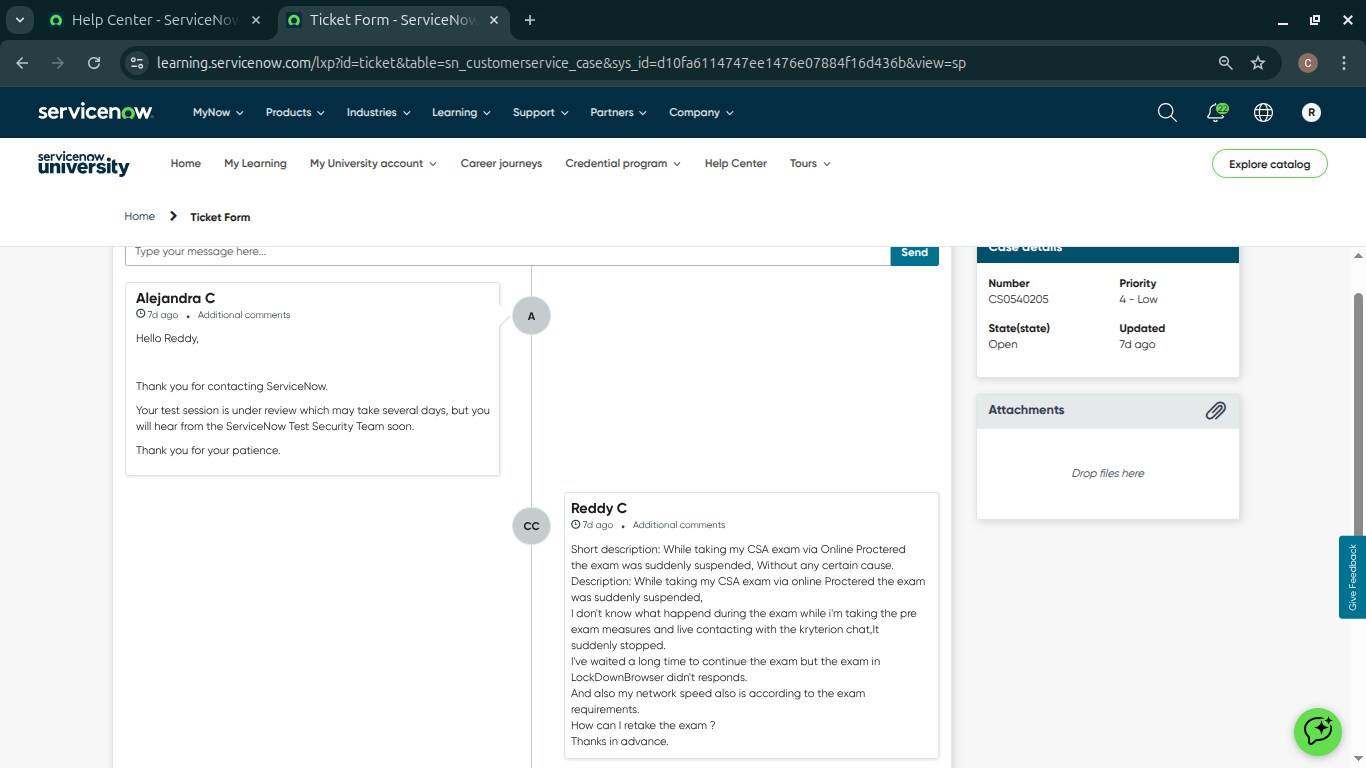 After shutdown my laptop and then again login, Created Case in ServiceNow Learning and still waiting for their reply, It has been 7 days.
