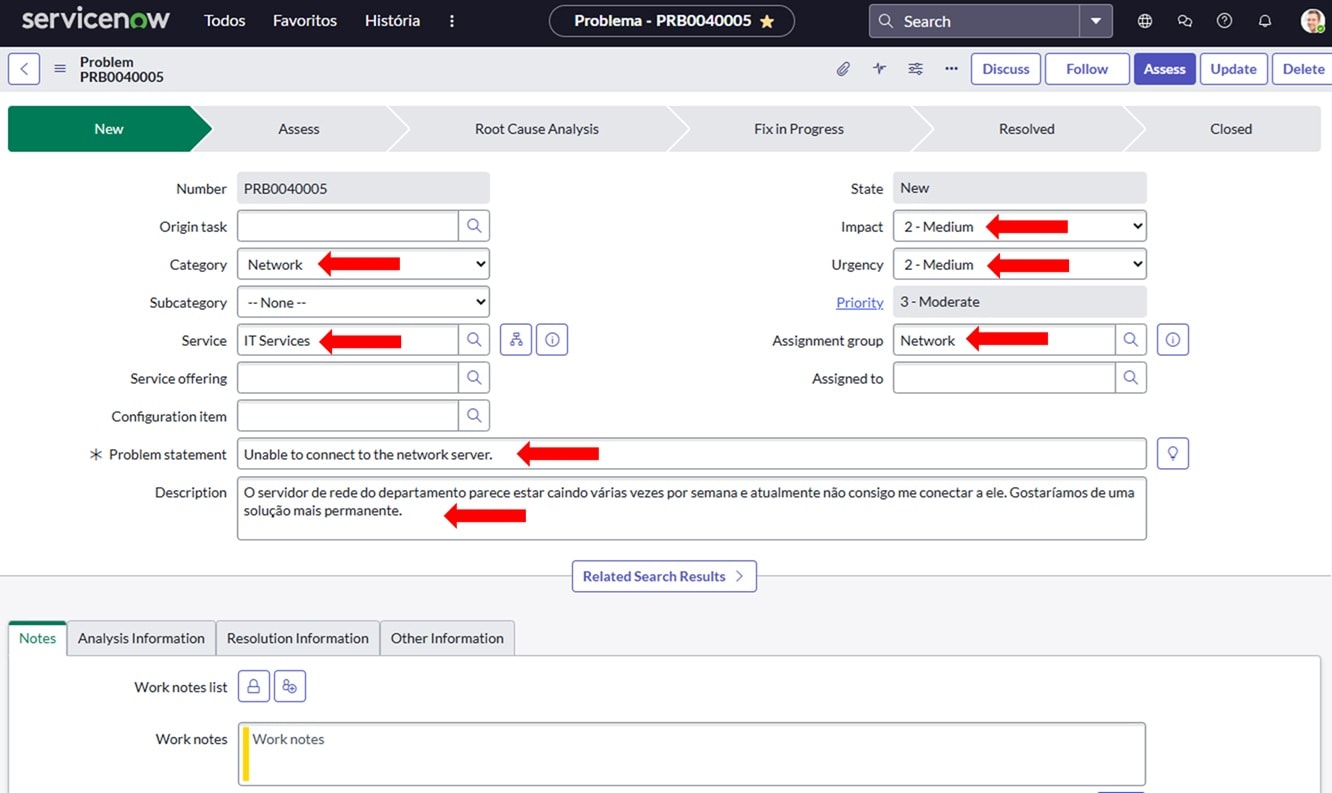 Make sure you have created the problem with mentioned value in task