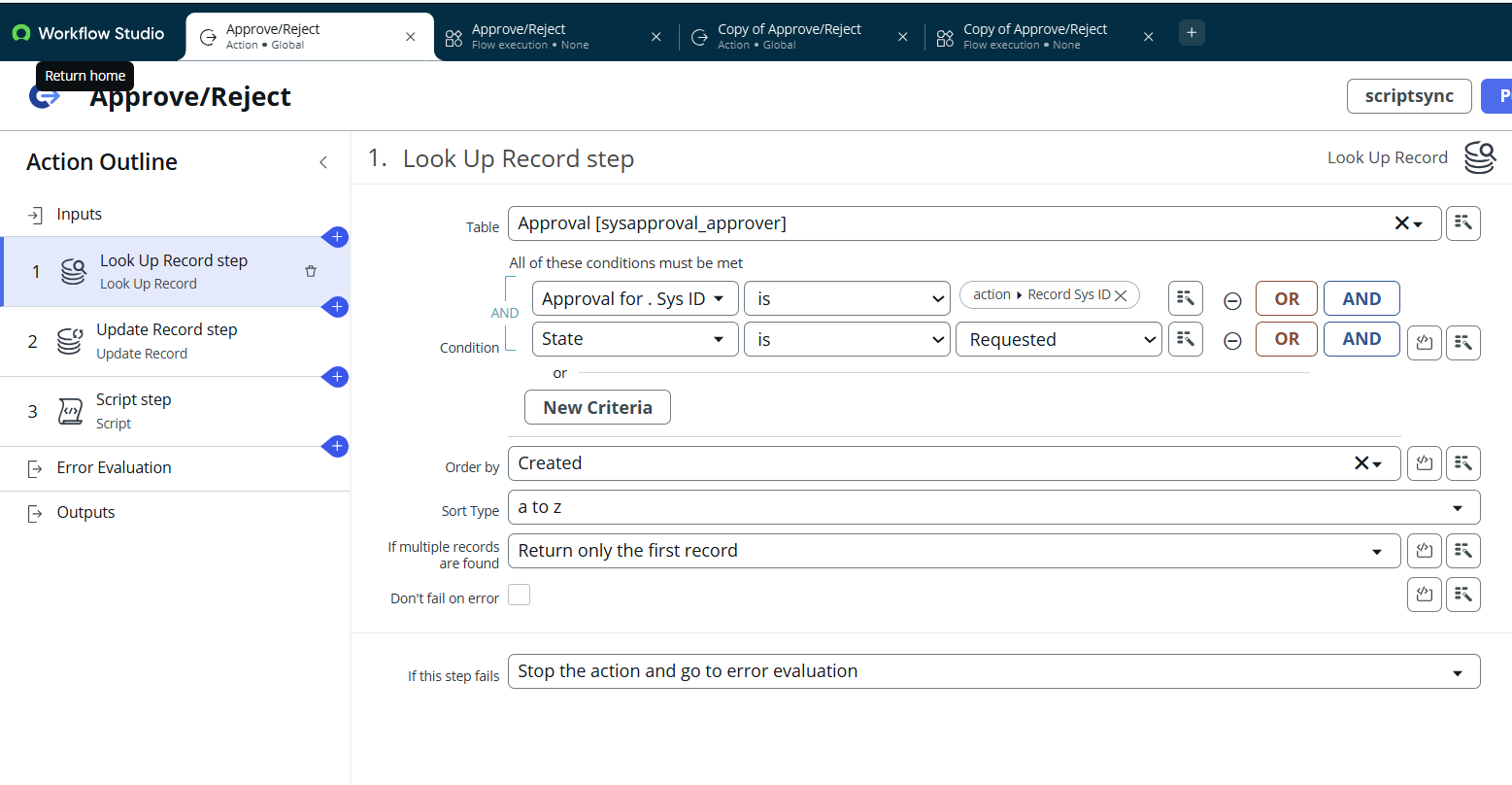 I’m working on a custom action in Flow Designer in ServiceNow where I’m trying to retrieve the Approver Name and Approval State from an Approval record.