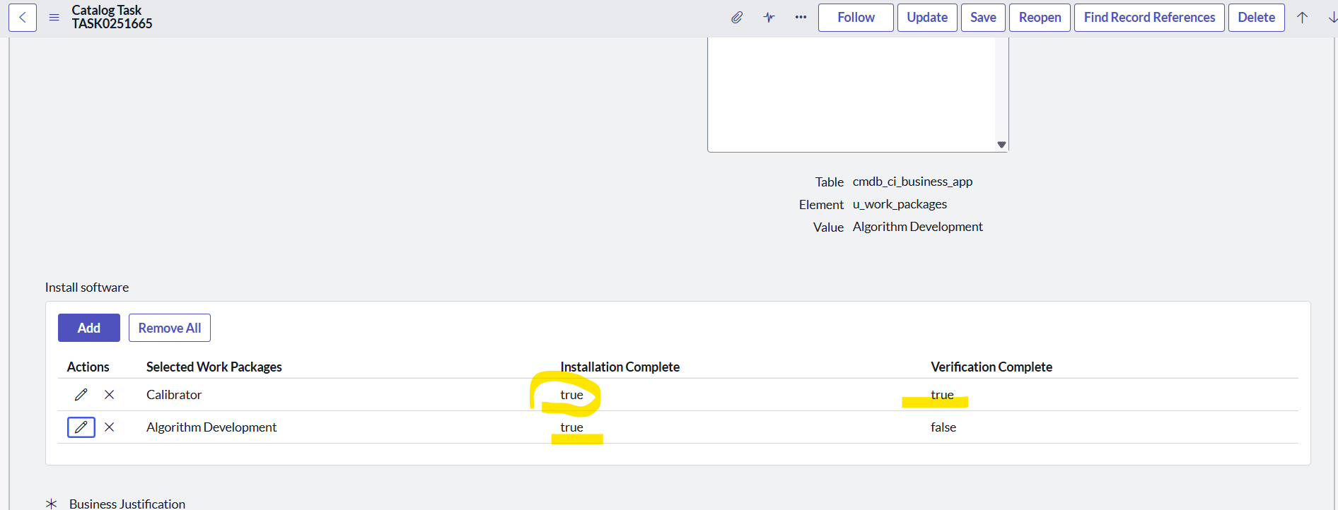 anyone know how to solve this problem I have multi row variable set with 3 fields in this 2 fields are check box type default displaying 'false' Task2 added this Multi row variable and come to catalog task i have modified the check box values and task closed after open the task2 its not stored changed check box values. for this i tried Business rule but its not working for more details find the screenshot if you know solution please guide me.