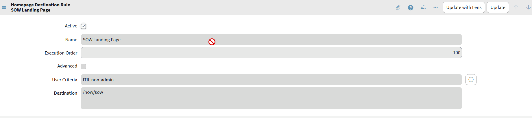 1) user criteria "ITIL non-admin" -> if logged in user is itil and non admin then take to now/sow