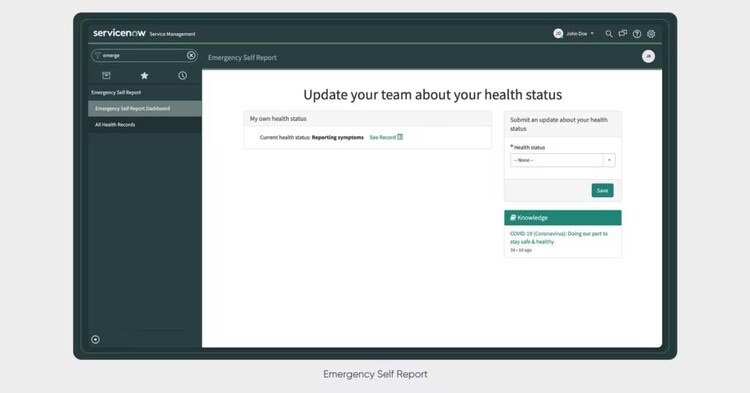- Emergency Outreach : lors d’une crise, ce workflow s’appuie sur la Now Platform pour aider les entreprises à se mettre en lien avec leurs employés afin d’évaluer l’impact. Les employeurs peuvent communiquer par e-mail pour fournir des renseignements, rappeler les mesures de sécurité, et demander à leurs employés où ils se trouvent, et s’ils sont en sécurité. Les employeurs peuvent également utiliser l’application ServiceNow pour envoyer des notifications push aux employés via un téléphone mobile afin d’obtenir une réponse.