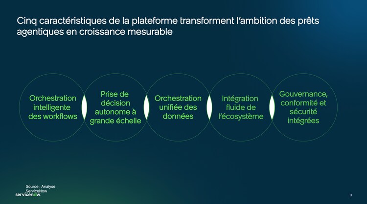 La ServiceNow AI Platform intègre cinq fonctionnalités qui permettent de transformer les opérations de prêt, en passant de workflows manuels et séquentiels à un traitement parallèle, intelligent et automatisé à grande échelle.