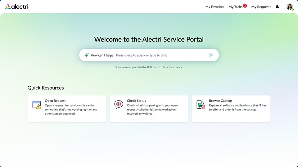 Free your teams to focus on their expertise with AI that answers and deflects requests through self-service and triages when needed.