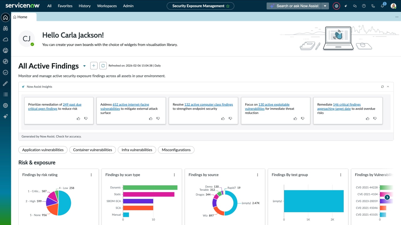 It consolidates findings from scanners, cloud, containers, and code into one workflow. It maps issues to the CMDB for context, prioritizes risks using threat intelligence and AI scoring, and automates remediation.