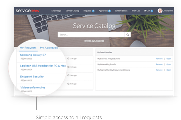 Simplified collaboration for IT teams and an easily configured portal provide users with a consumer‑like experience for requesting and tracking services.