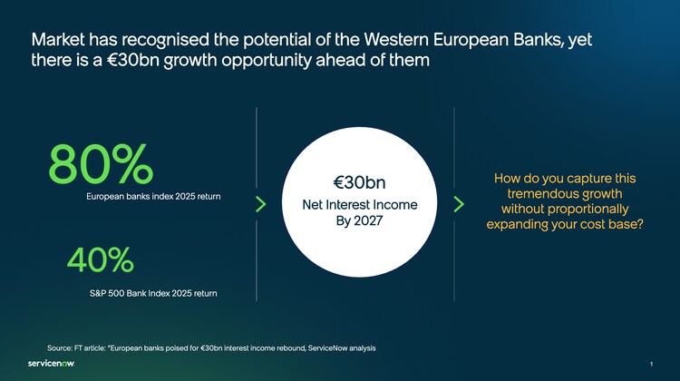 European banks are entering a period of renewed momentum. Markets have recognised the sector's potential, with European bank shares rising approximately 80% through 2025, outpacing their US peers (approximately 40%).1