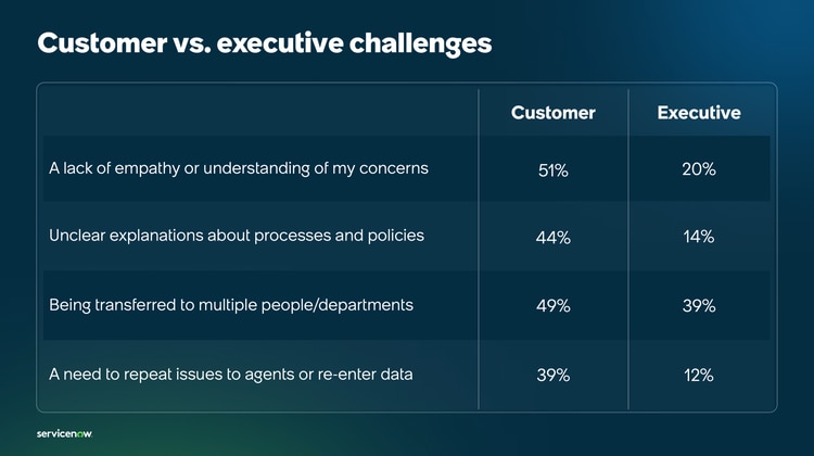 There’s a gap between what executives are prioritising and what customers need. Many customers in the UK simply want to be understood: 51% cite a lack of empathy in interactions as their top frustration. Yet only 20% of executives say they see this as a customer challenge.